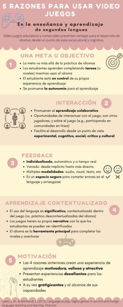 Original text:Sykes, J. M. & Reinhardt, J. (2012). Language at play: Digital games in second and foreign language teaching and learning. Pearson.