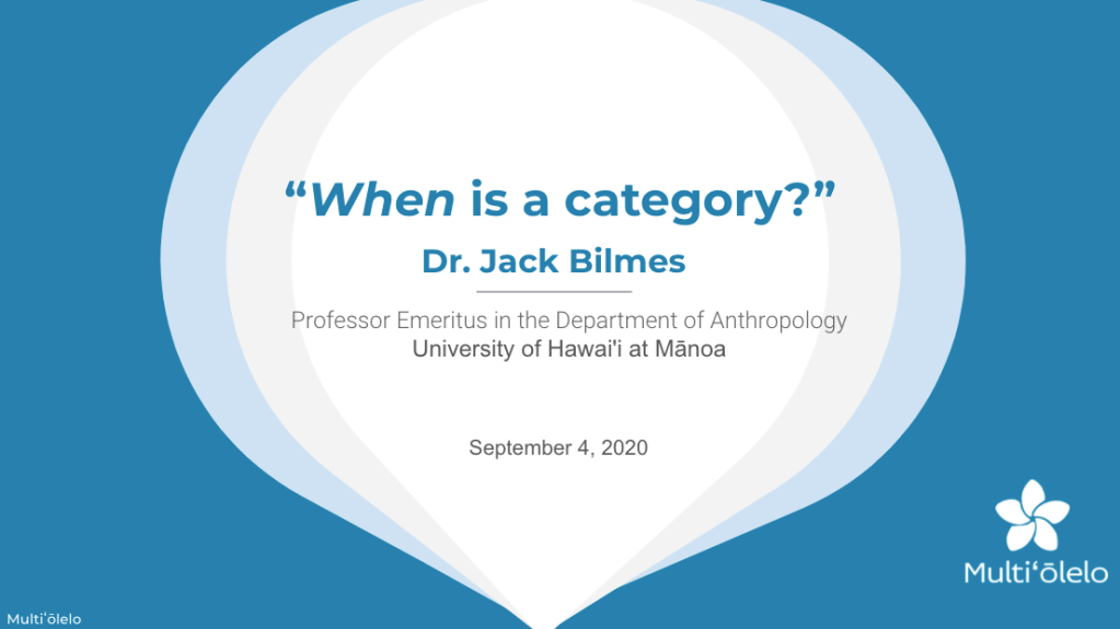 In this special talk, Dr. Jack Bilmes, Emeritus Professor of Anthropology at the University of Hawaii, shares his recent work on delineating categories. The special talk was held virtually on September 4, 2020, in collaboration with EMCA and CAN-ASIA data sessions.