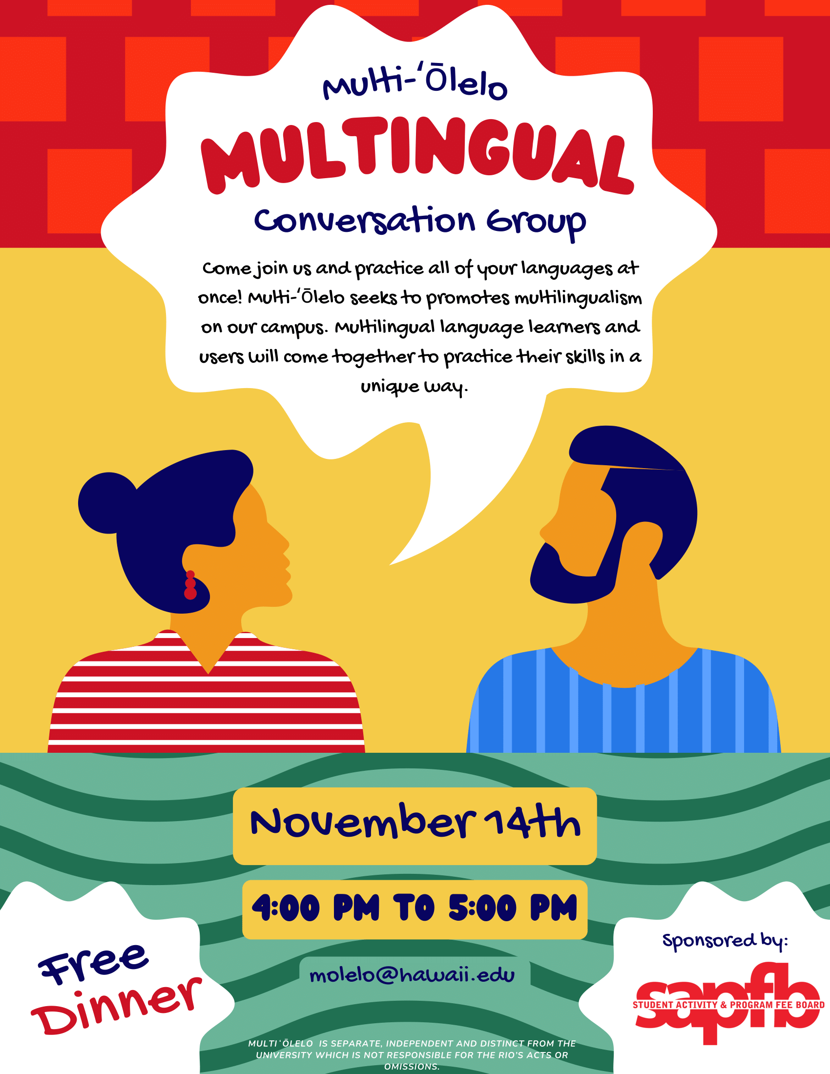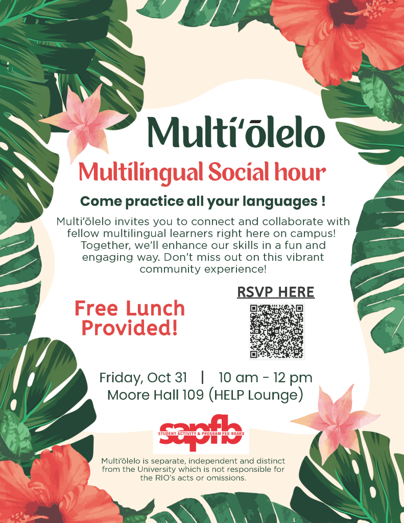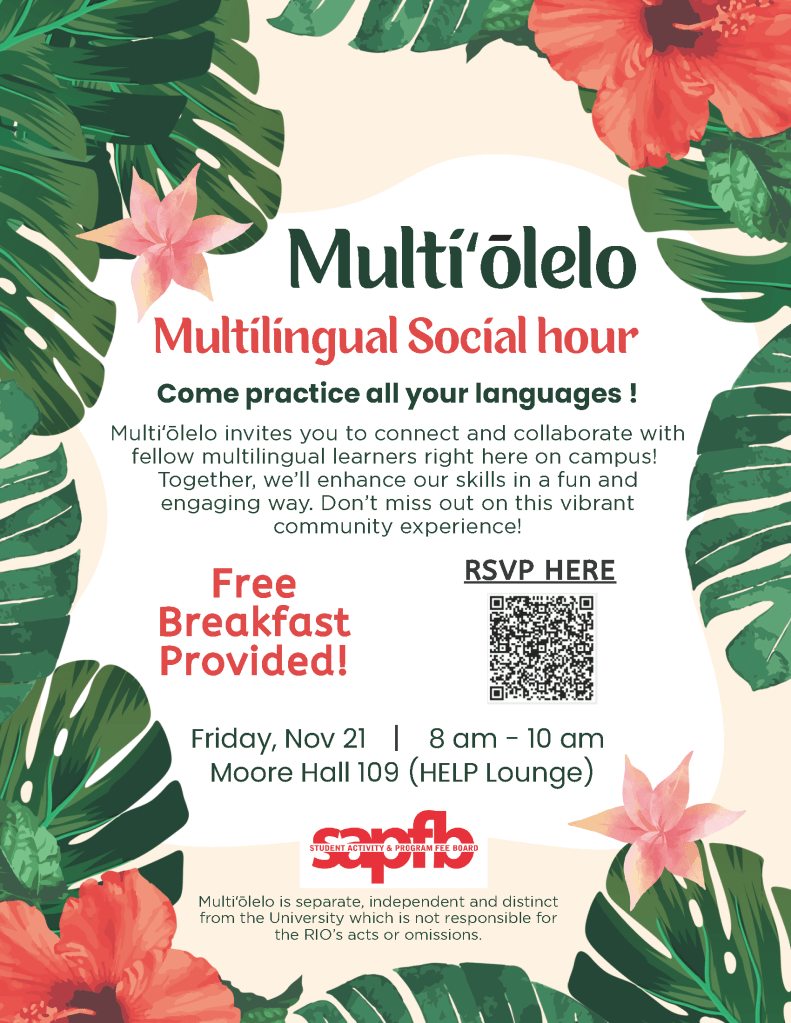 At this event, you’ll have the chance to connect with people from various disciplines, share experiences, and celebrate our diverse languages. Feel free to use all the languages you know—translanguaging is encouraged. Dinner will be provided! It’s first-come, first-served, so be sure to RSVP soon! If you have any dietary restrictions, please let us know in the Google form, and we’ll do our best to accommodate.