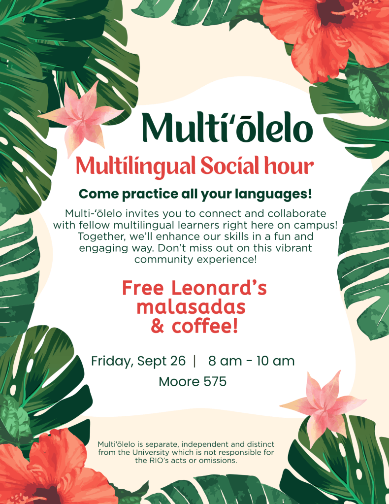 We will be serving Leonard’s malasadas and coffee, so don’t miss out! Let’s celebrate our diverse languages together—can’t wait to see you there!